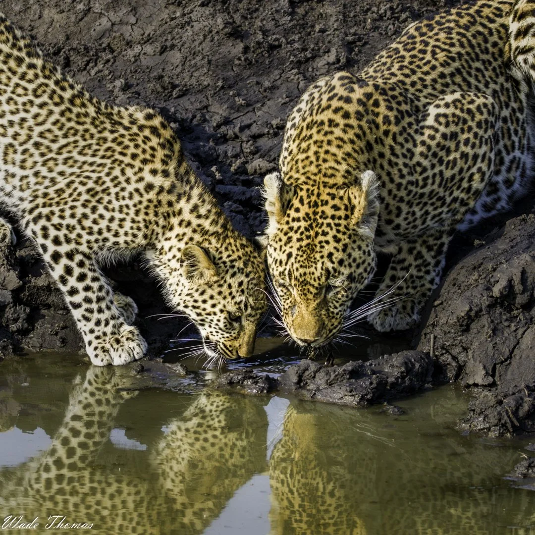 Leopards drinking in Sabi Sands, South Africa - pic courtesy of Wade Thomas